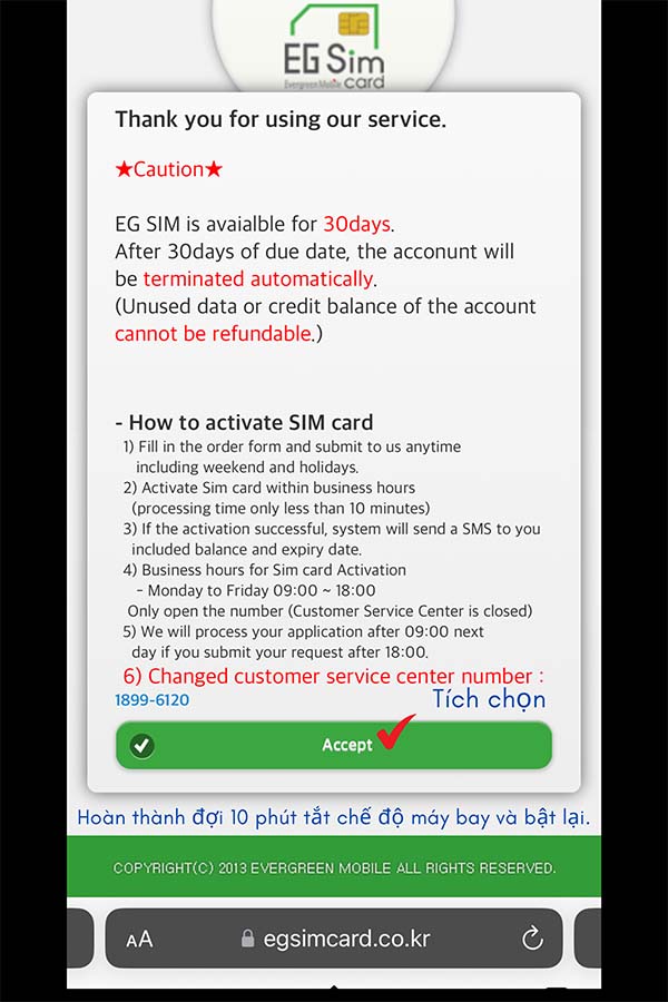 Đầu tiên quý khách vui lòng đăng nhập vào link này : https://m.egsimcard.co.kr/gate.asp